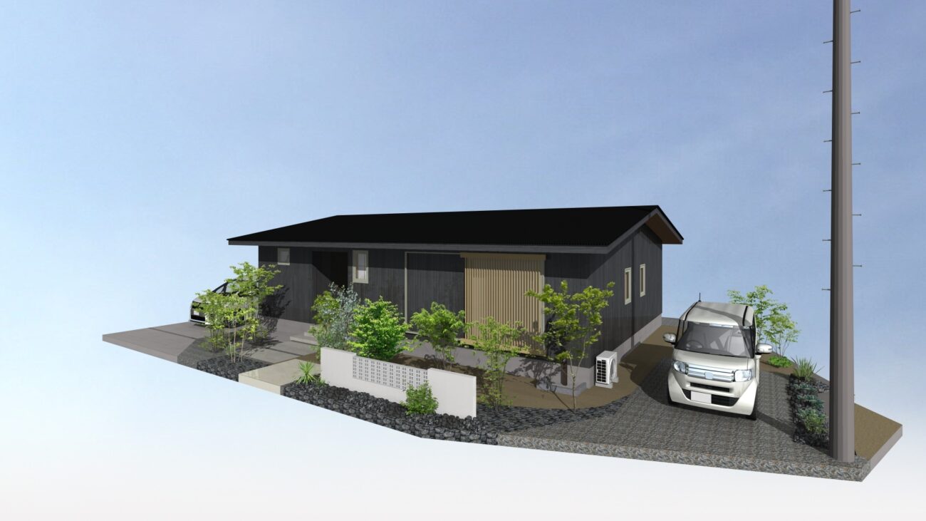 • 外壁には重厚感のある焼杉を採用し、和モダンな佇まい。